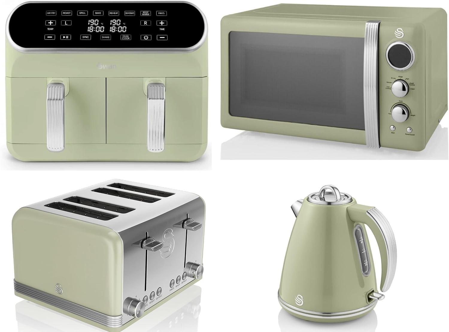 SWAN Retro Green Kettle Toaster Microwave Air Fryer Matching Set