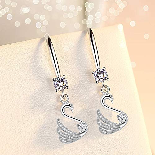 JQQJZLC jewellery Silver Earrings, 925 Sterling Silver Women's Fashion Jewelry Blue Pink Zircon Crystal Swan Long Tassel Retro Simple Hook Earrings jewelry