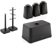 Swan Stealth Black Breadbin Canisters Mug Tree & Towel Pole Kitchen Storage Set