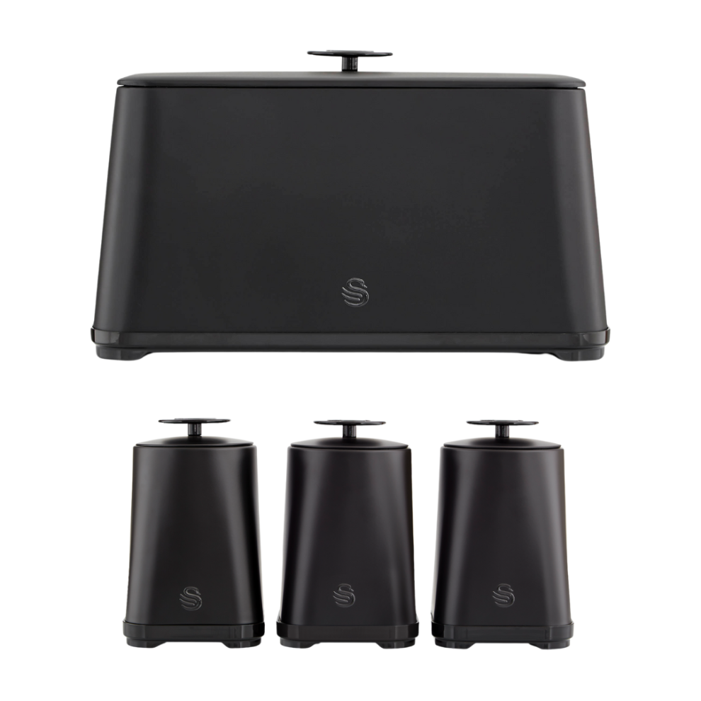 Swan Stealth Bread Bin & Canisters Kitchen Set (Black)