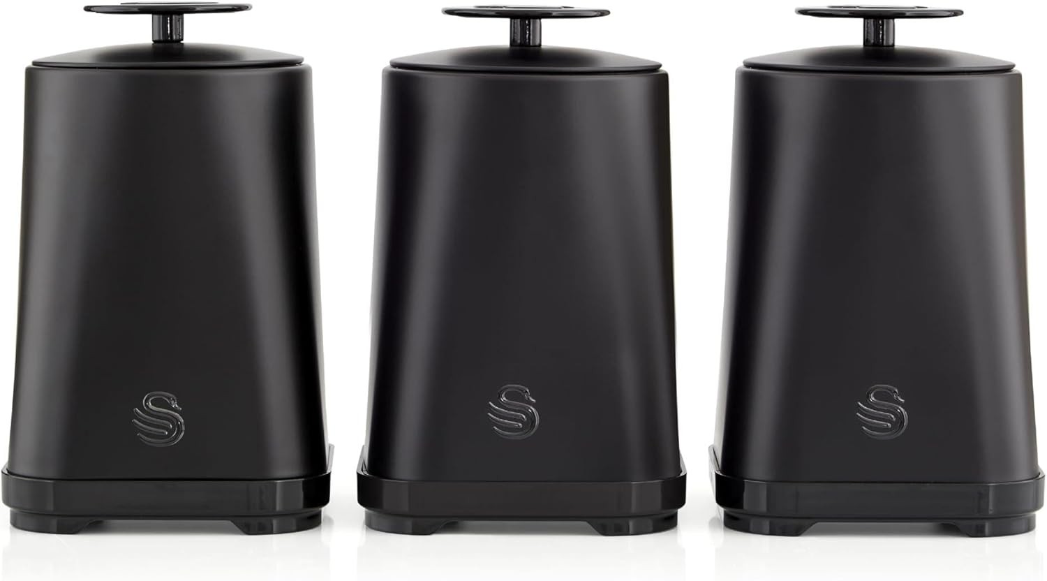 Swan SWKA18521BLKN Stealth Set of 3 Storage Canisters for Coffee/Sugar/Tea & Ot