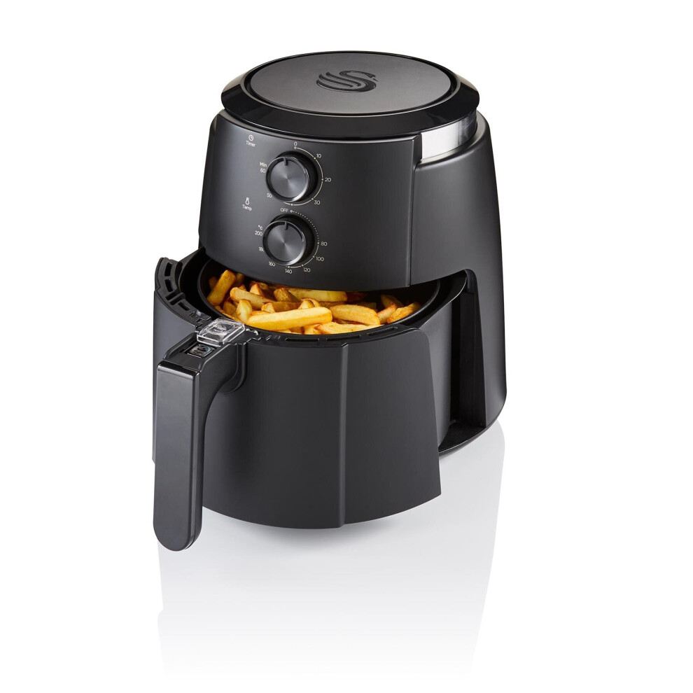 Swan SD75210BLKN Stealth 4.7L Manual Air Fryer with Adjustable Temperature, 60 Minute Timer, Compact, 1500W, Matte Black