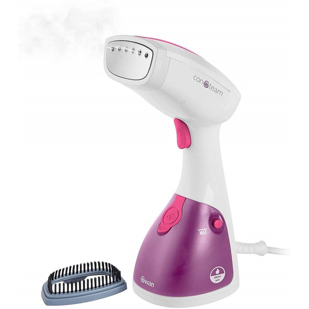 Swan SI12020N Handheld Garment Steamer, Lightweight, Removable Fabric Brush, Extra-Long 1.9m Power Cable, 1100W, 250ml Water Tank,White and Pink
