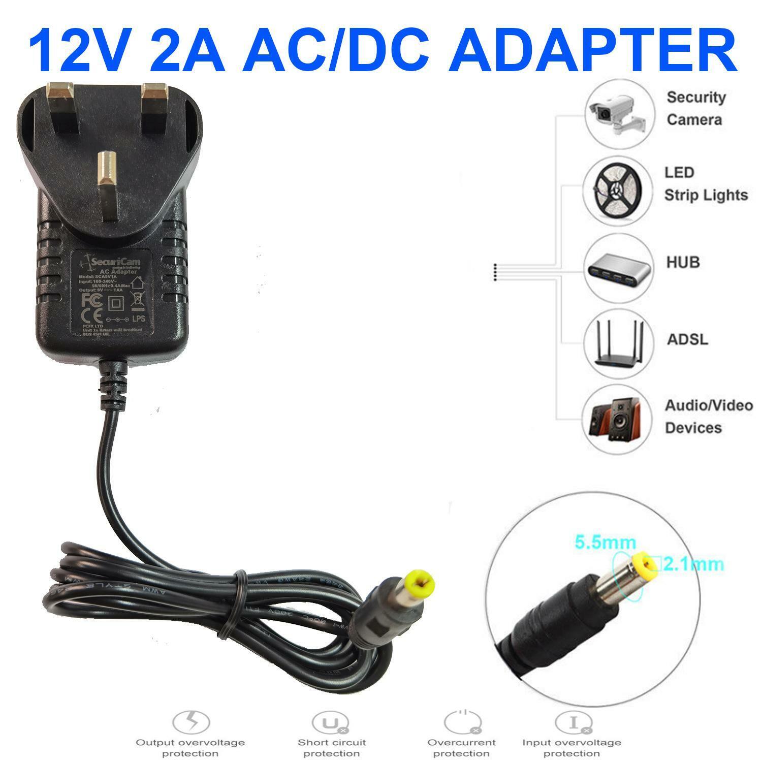 AC/DC Adapter To Fit 12V Swann CCTV DVR Camera KITS Power Supply 12V 2A UK Mains