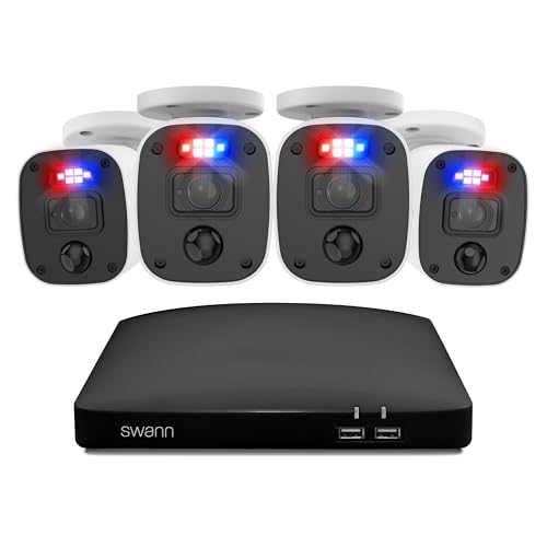 Swann 1080p HD Security Camera System, 8-Ch DVR with 1TB HDD, 8 Indoor/Outdoor Wired Dome Cameras, 24/7 Home Surveillance, Color Night Vision, Weatherproof, True Detect, Flashing & Spotlights,4680