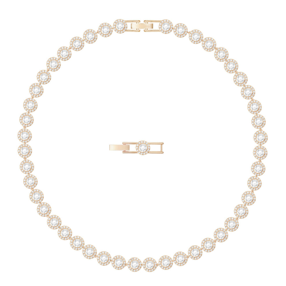 Swarovski Una Angelic Jewellery Set, Necklace & Bracelet with Clear Round-Cut Crystals in a Gold-Tone Finished Setting, Part of the Una Angelic Collection