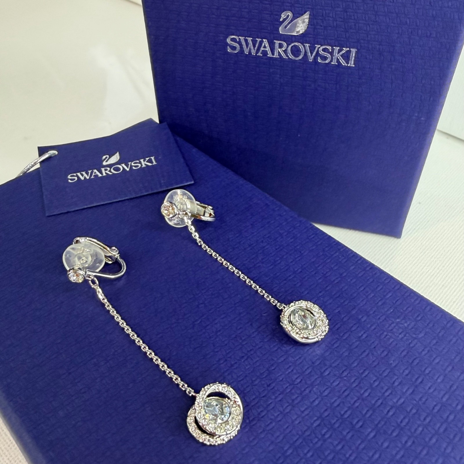 Swarovski Clip ON earrings Una Angelic drop Round cut White In Box