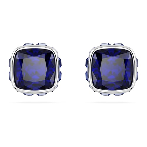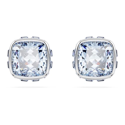 Swarovski Matrix Stud Earrings, Blue Square-Cut Stones in a Rhodium-Finished Setting, Part of the Swarovski Matrix Collection