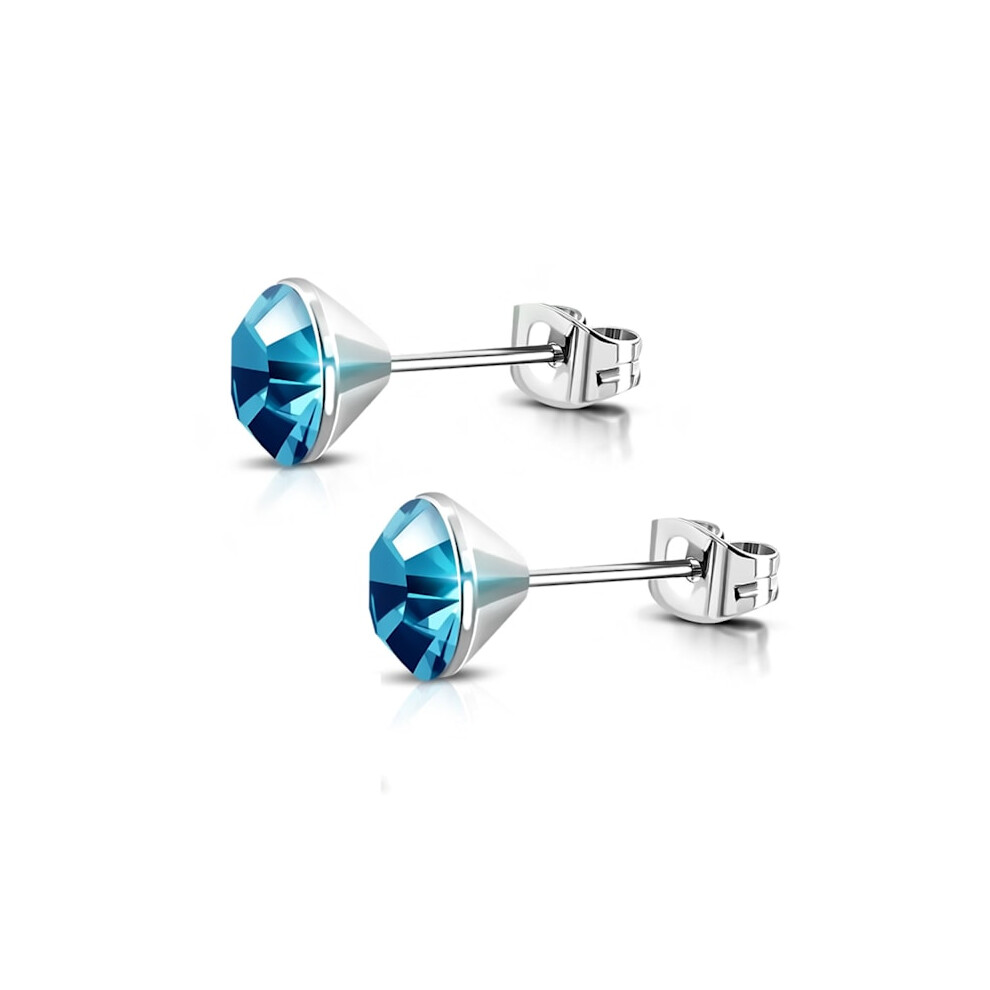 Stud Earrings in Surgical Steel 316L in Silver Color with Round Light Blue Swarovski Crystal â 4 mm