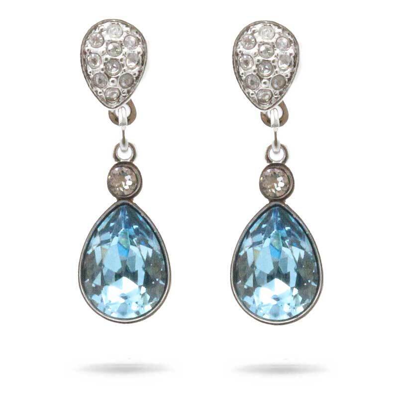 Swarovski Silver Earrings Ocean Blue Aqua White Drop Earrings - NEW GENUINE