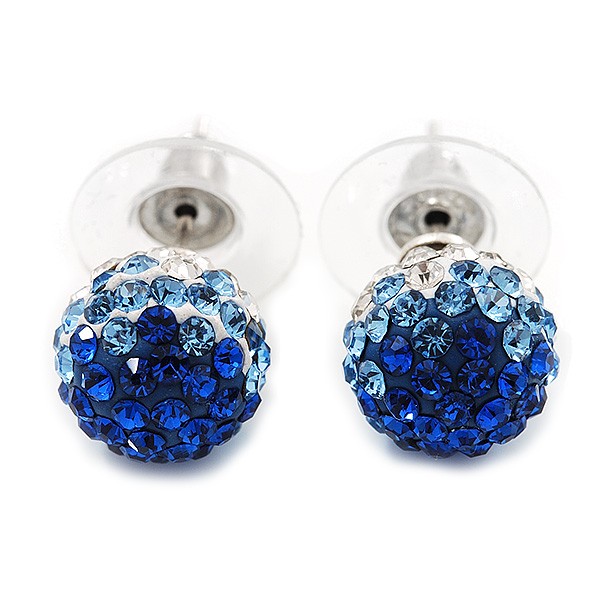 Royal Blue/Sky Blue/Clear Swarovski Crystal Ball Stud Earrings In Silver Plated