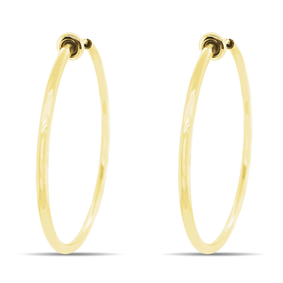 Clip On Spring Hoop Earrings for Non-Pierced Ears (40mm Gold-Tone)