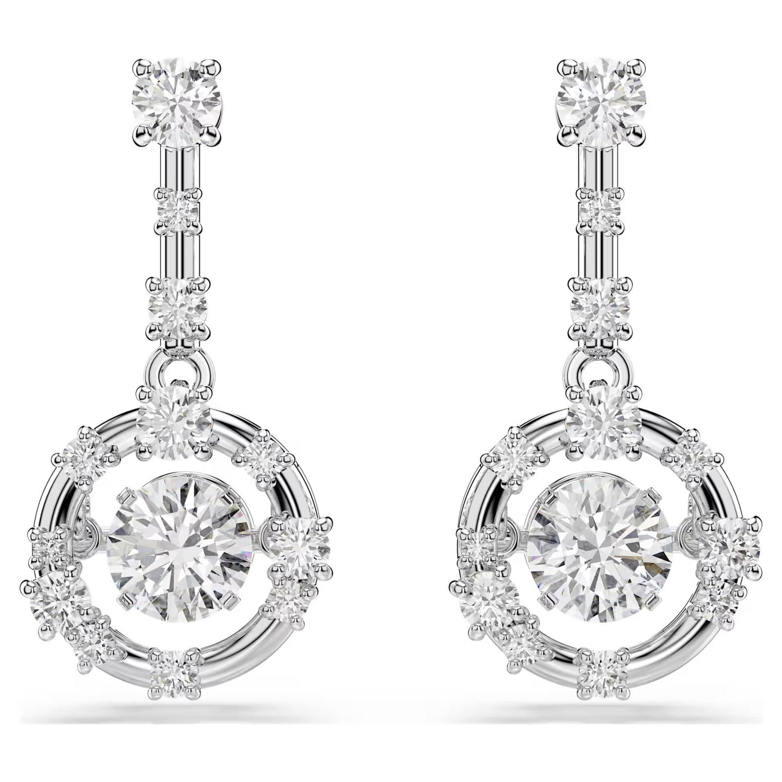Constella White Rhodium Plated Crystal Dancing Stone Drop Earrings