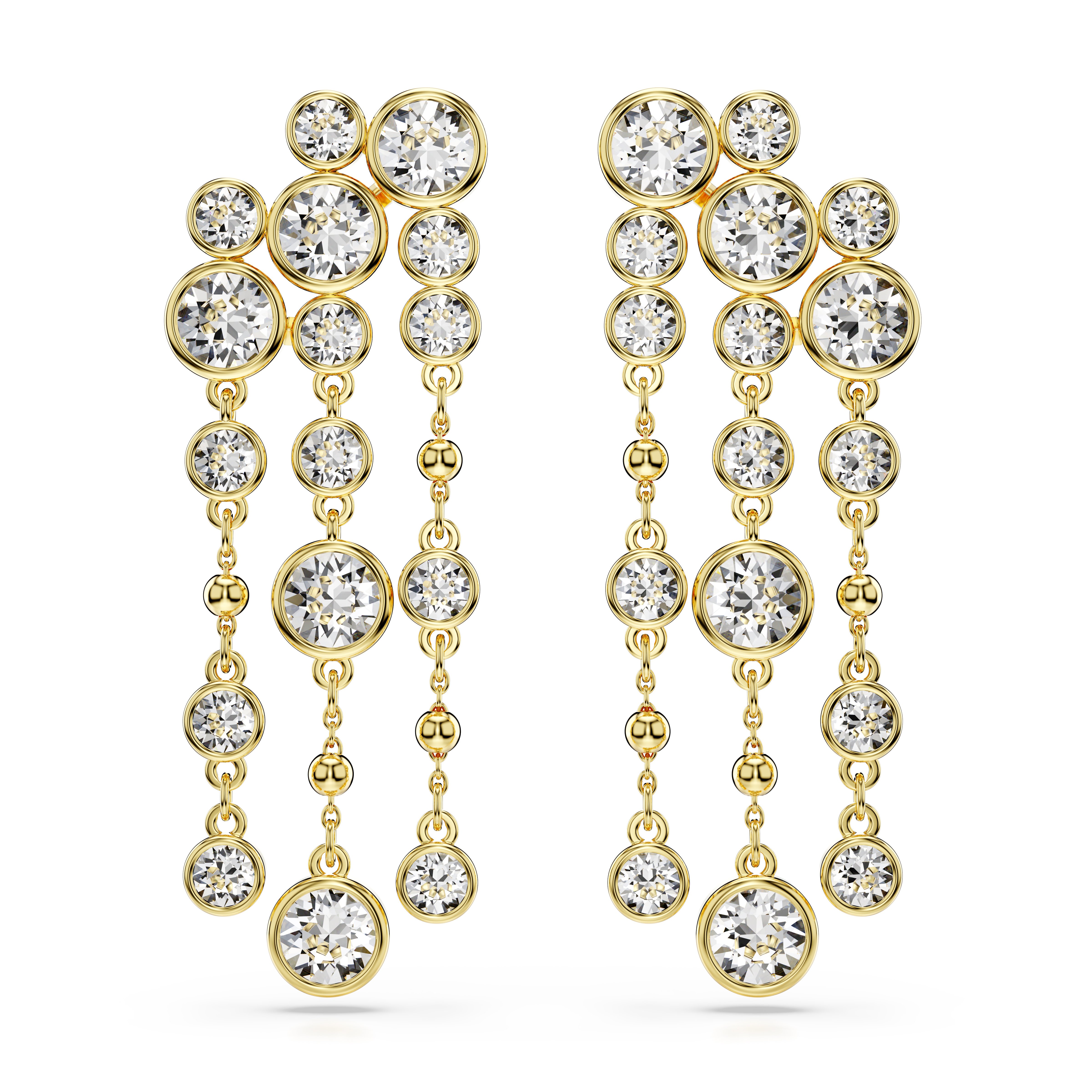 Swarovski Constella drop earrings, Round cut, White, Gold-tone plated