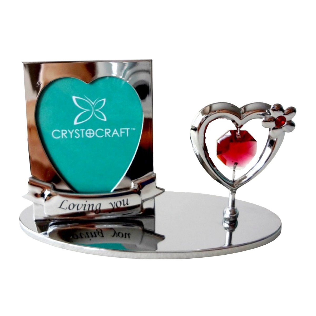 Crystocraft I Love You Photo Frame Heart Crystal Ornament Swarovski Elements