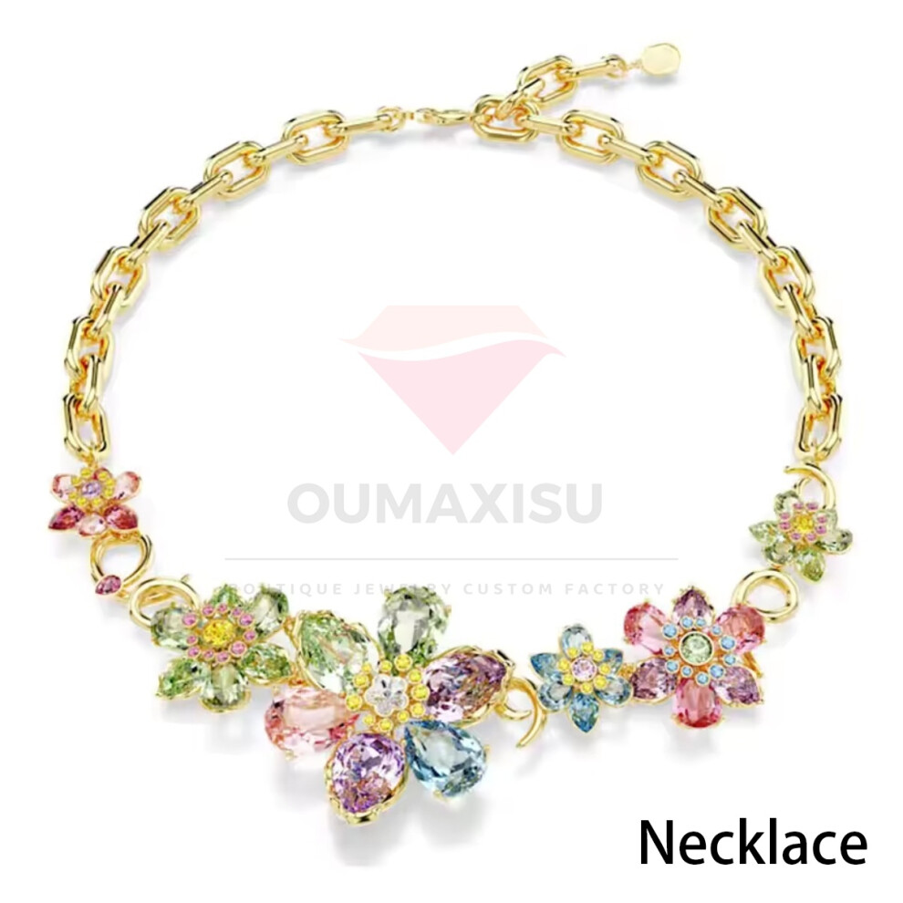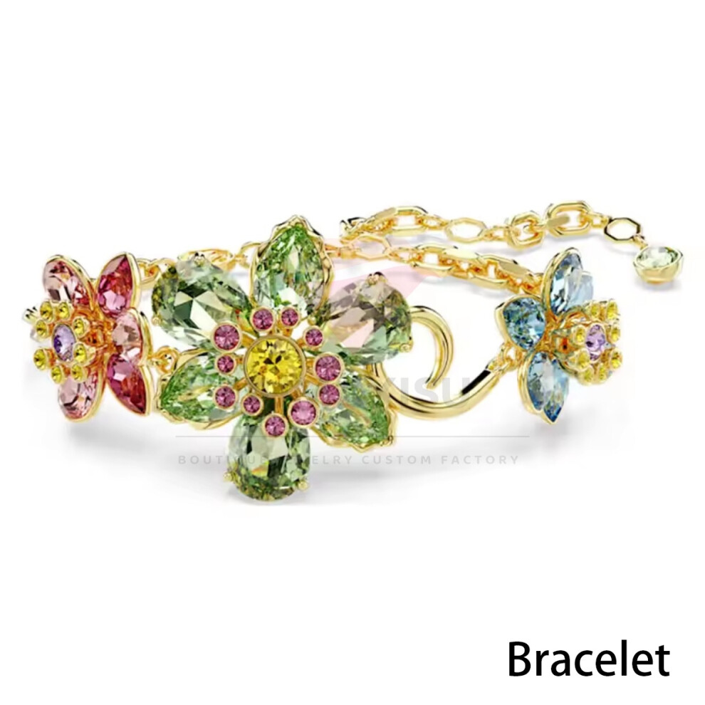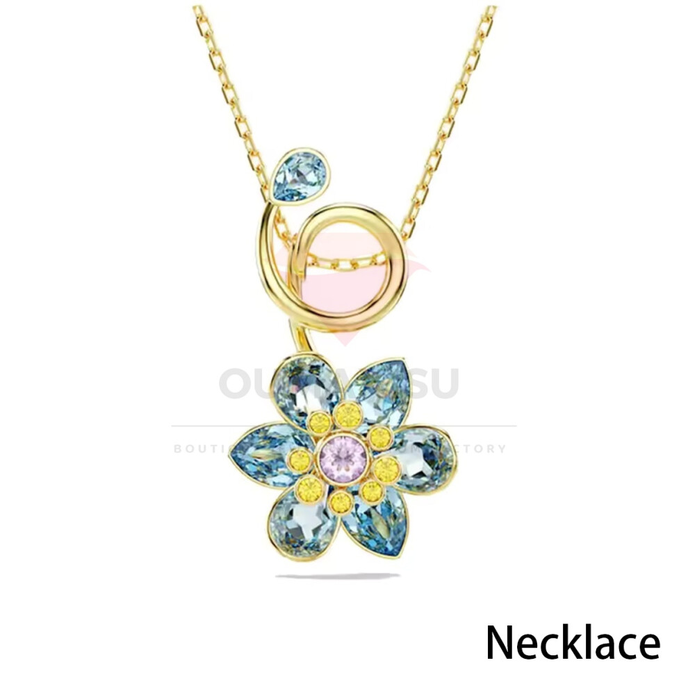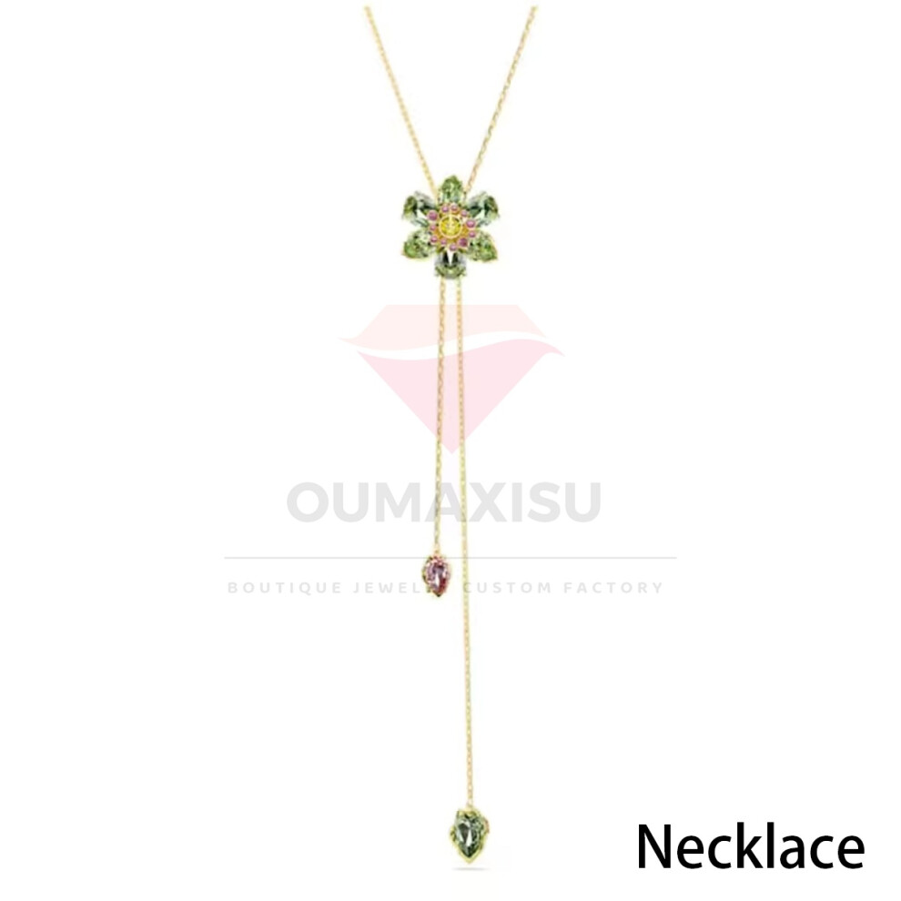 (tdwBOJxl-ktd01) Fashionable S925 Plant Zircon Necklace Bracelet Earnail Ring Jewelry Set Swarovski Banquet Versatile Jewelry - Birthday Gift