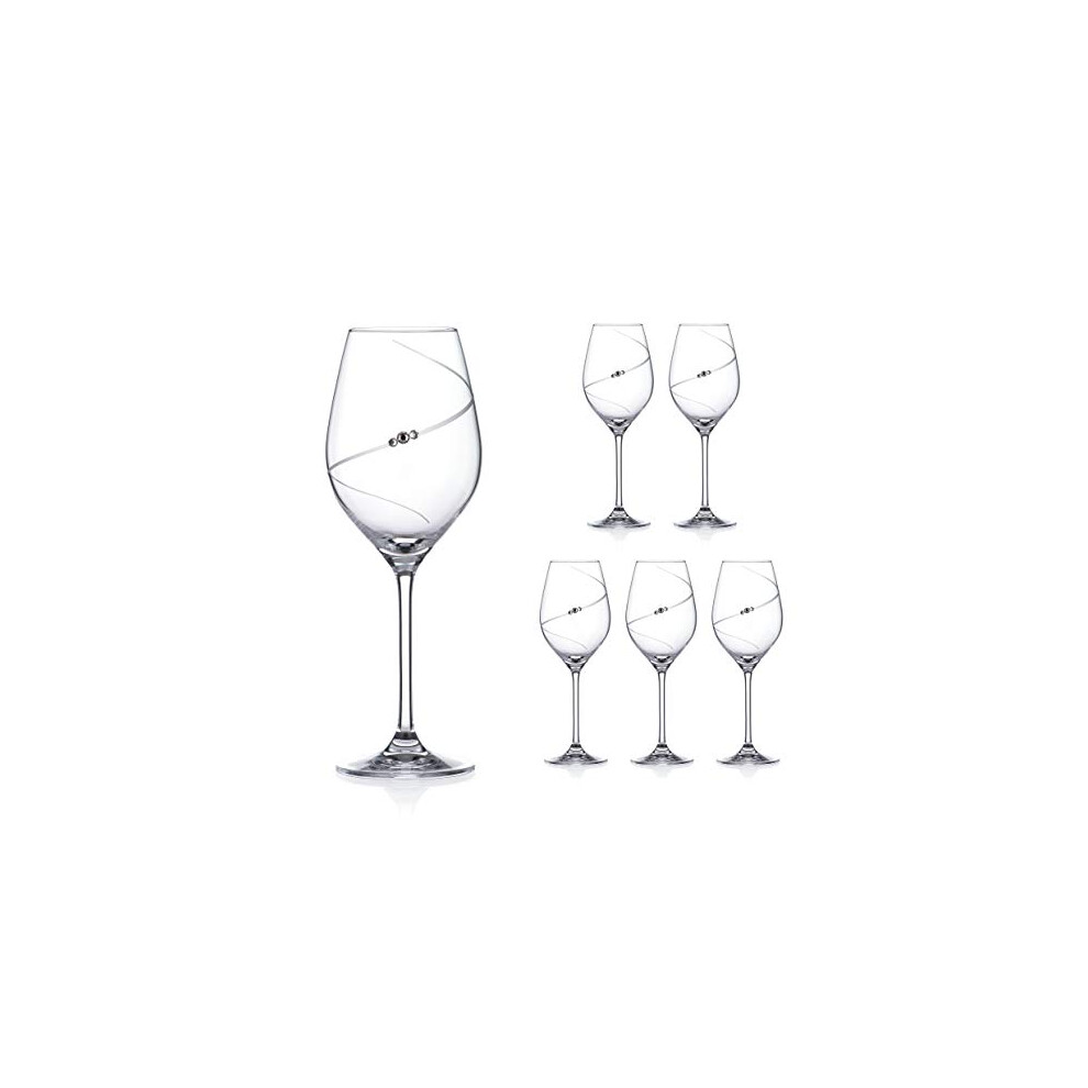 DIAMANTE Swarovski White Wine Glasses - 'Silhouette' Hand Cut Design Embellished with Swarovski Crystals - Set of 6