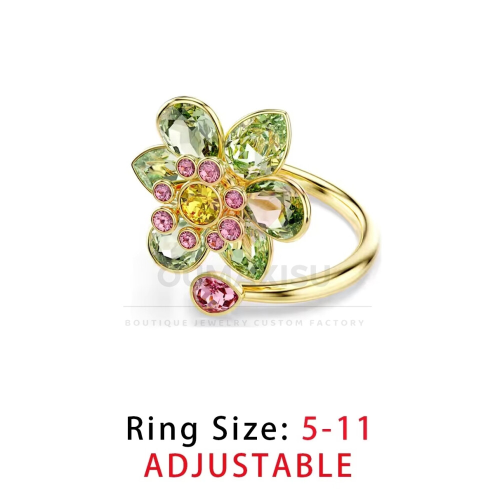 (tdwBOJxl-ktd04) Fashionable S925 Plant Zircon Necklace Bracelet Earnail Ring Jewelry Set Swarovski Banquet Versatile Jewelry - Birthday Gift