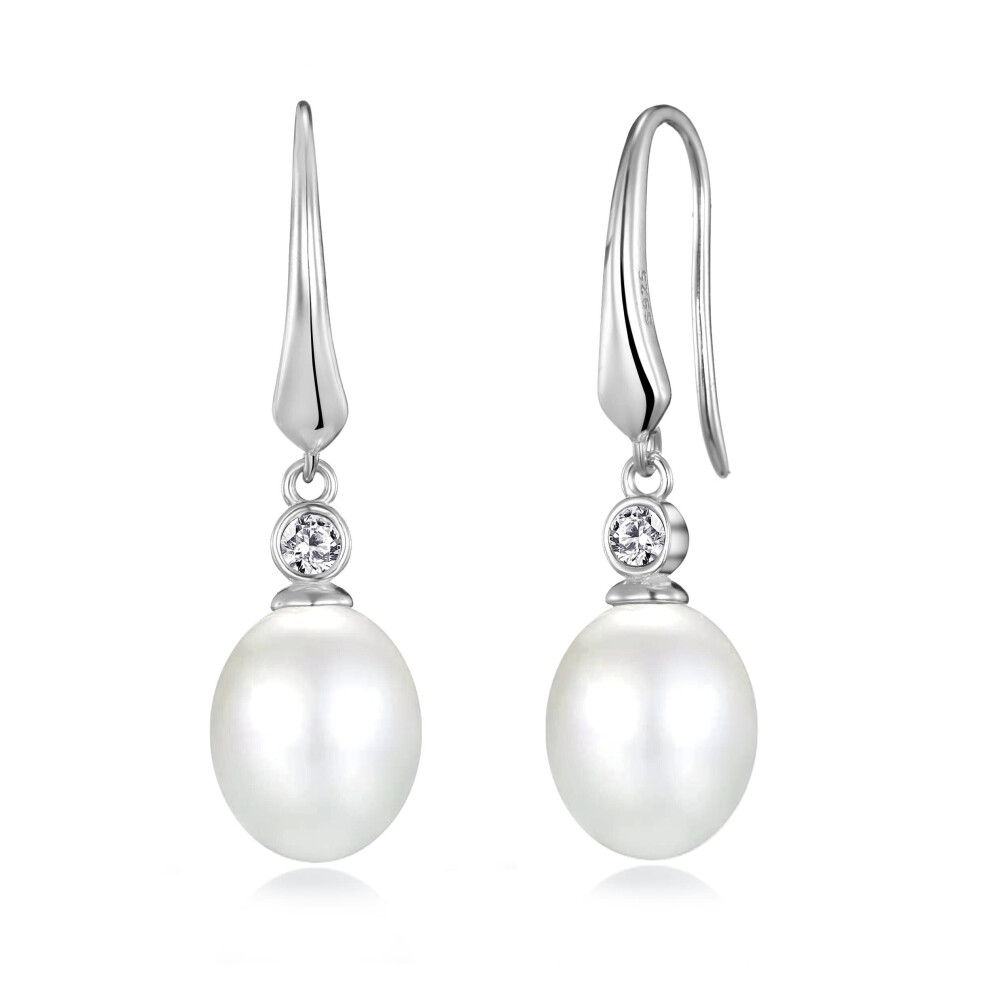 Sterling Silver White Pearl Drop Earrings Created with Swarovski Crystals