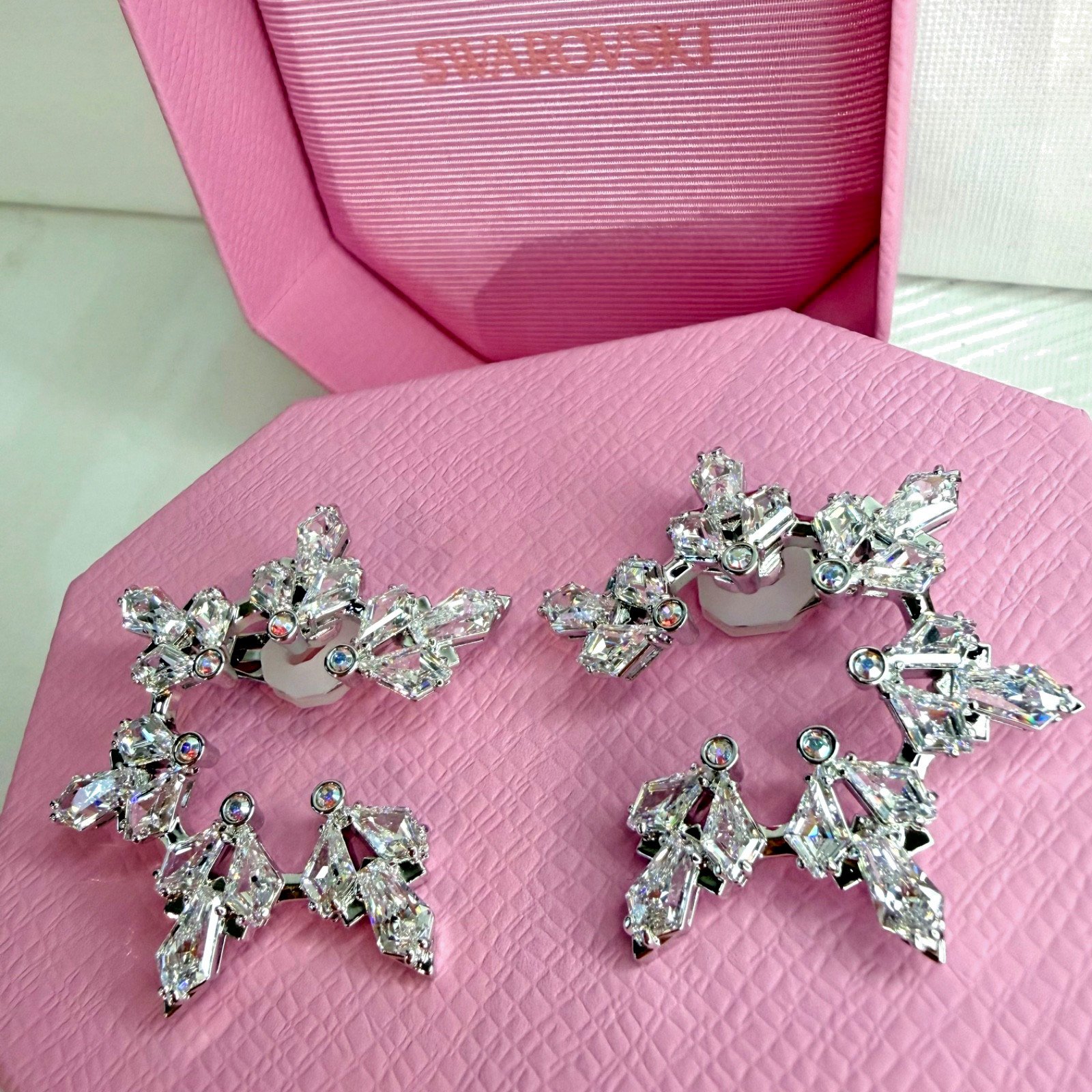 Swarovski Clip On Earrings Idyllia half snowflakes Silver rhodium plated