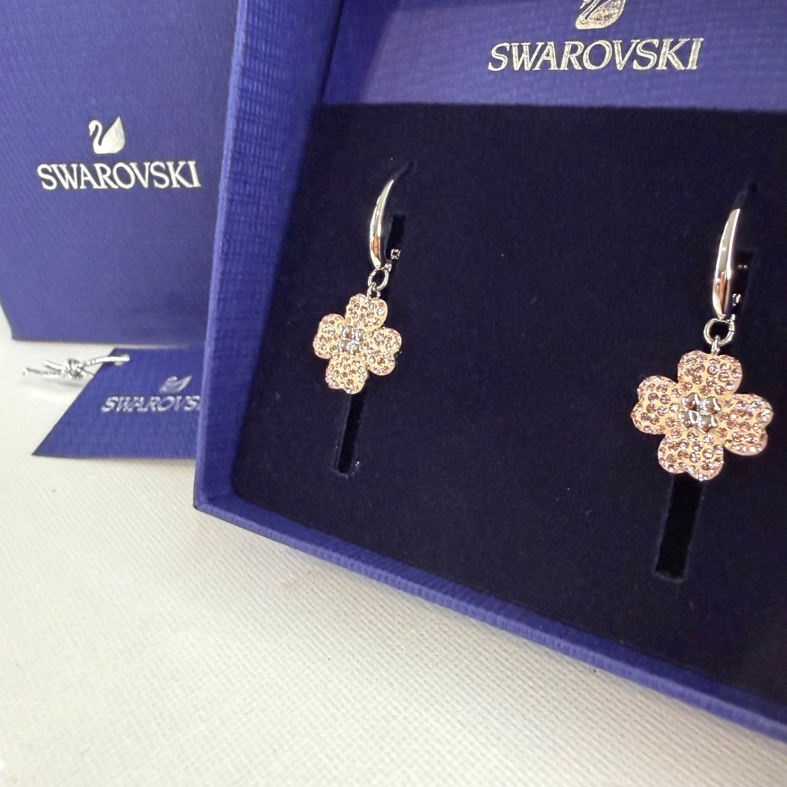 Swarovski Flower Earrings Pink Latisha Silver Rhodium Plated New In Box