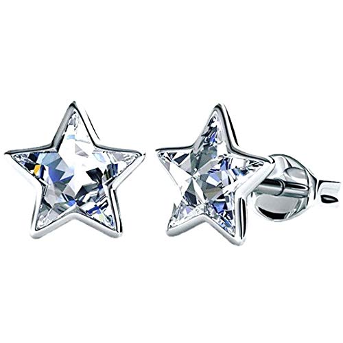 Silver Star Small Stud Swarovski Crystal Earrings - Rhodium plated for Women's or Girl's Gift.
