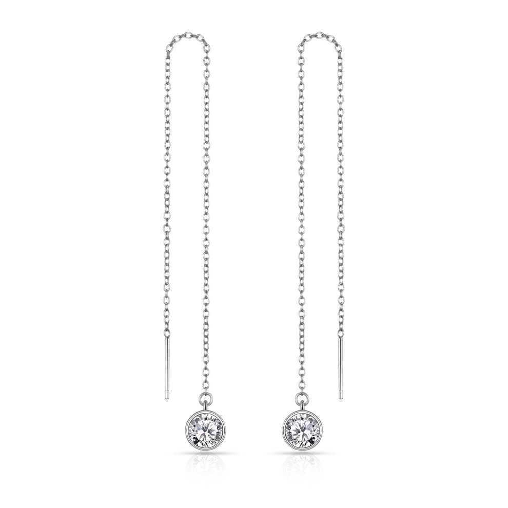 Sterling Silver Thread Earrings Created with Swarovski Crystals