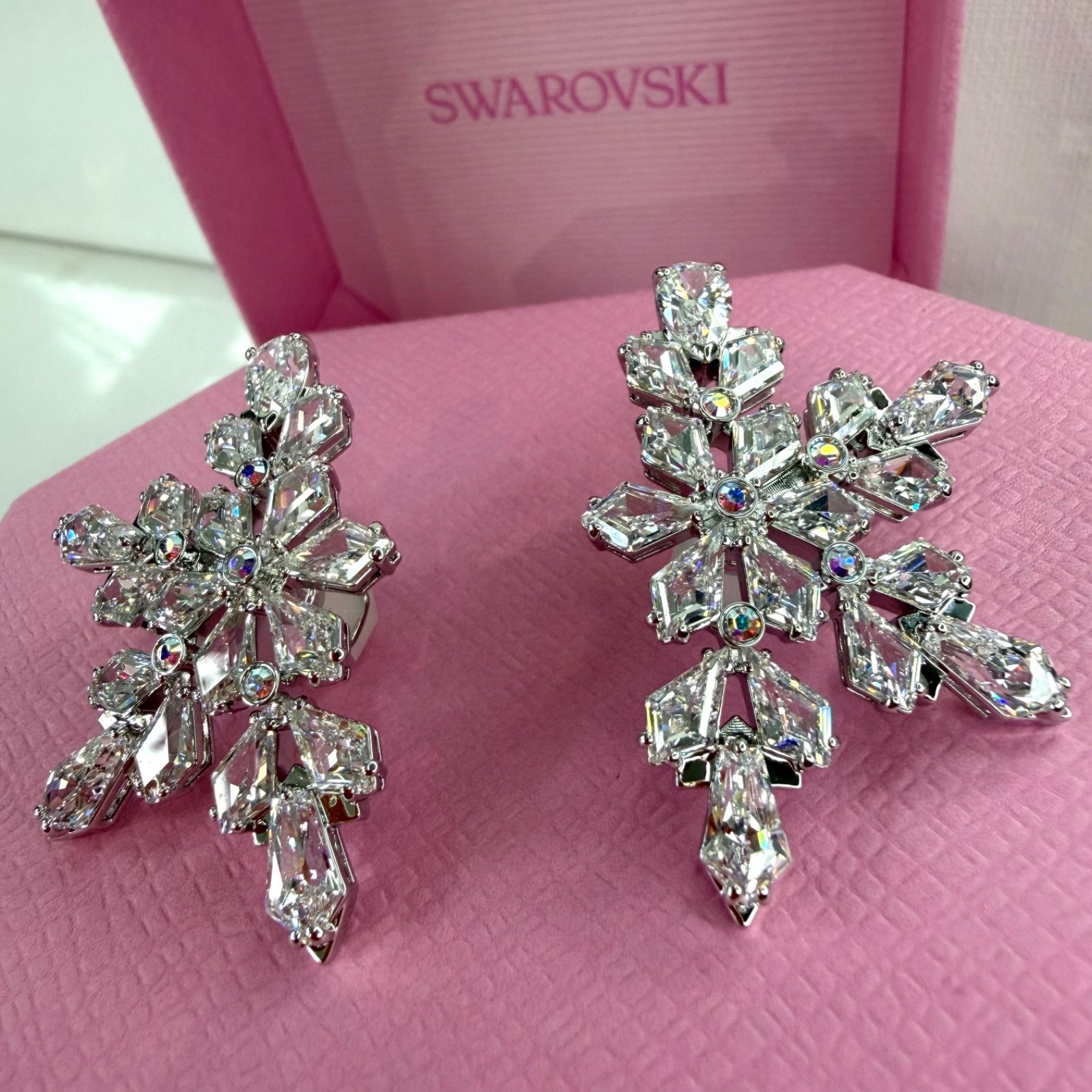 Swarovski Clip On Earrings Idyllia Full snowflakes Silver rhodium plated