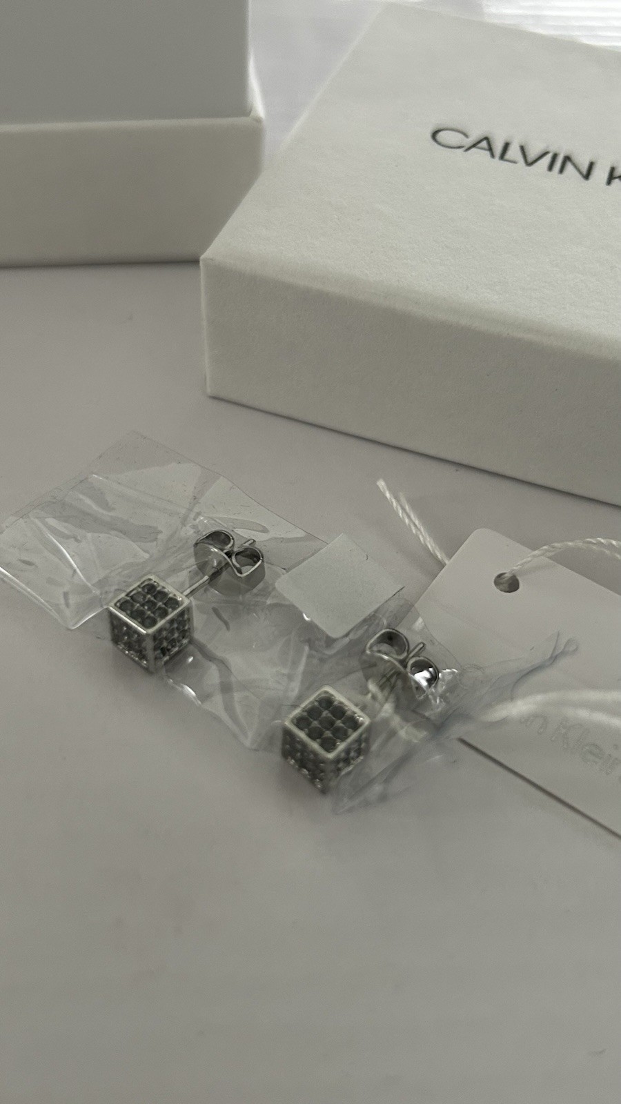 CALVIN KLEIN KJ9CPE040100 SWAROVSKI SILVER TONE CUBE STUD EARRINGS