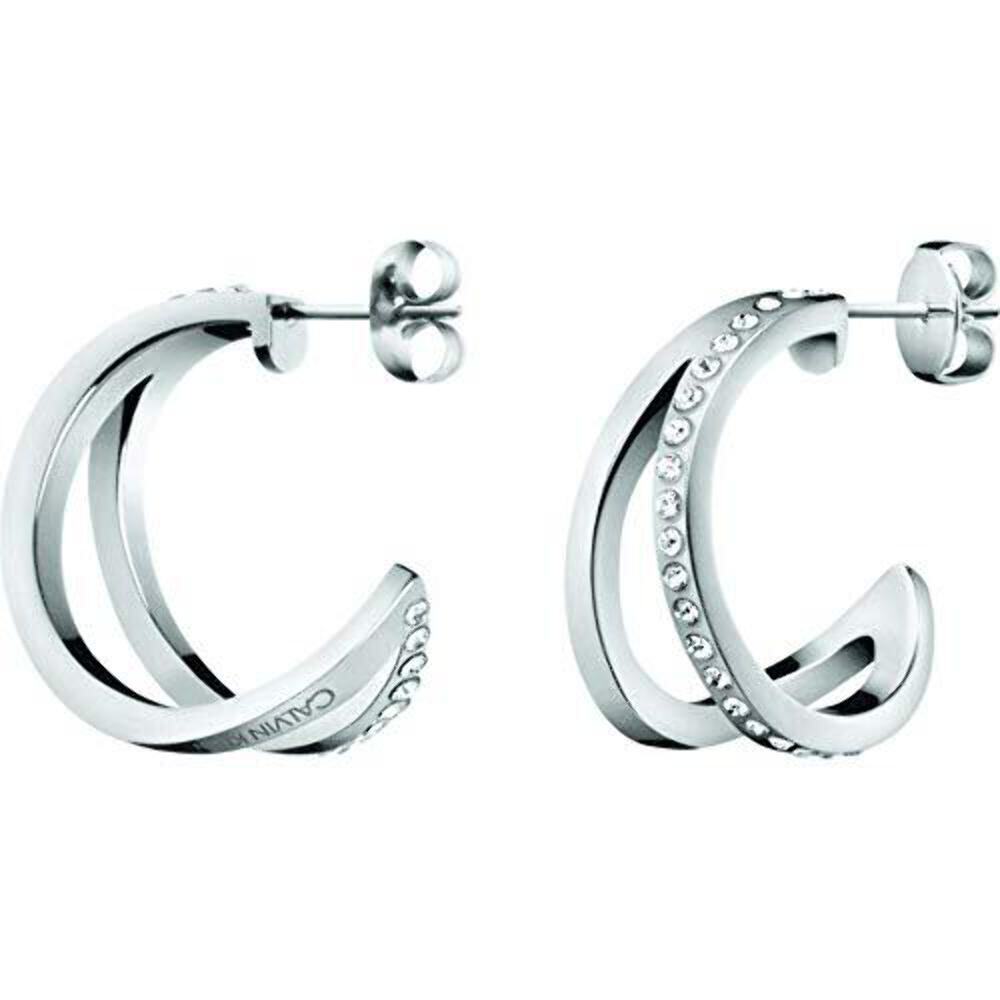 Calvin Klein Outline Creole Earrings Stainless Steel Swarovski Crystal Silver KJ