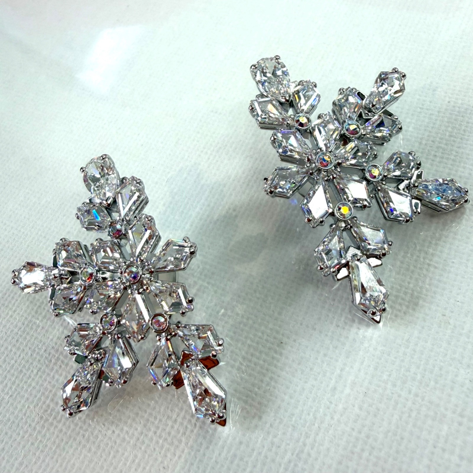 Swarovski Idyllia Full Snowflake Statement Clip-On Earrings Silver Tone 5692641