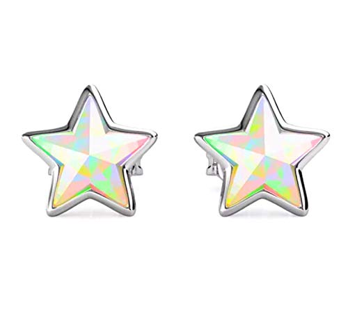Silver Star Rainbow Small Stud Swarovski Crystal Earrings - Rhodium plated for Women's or Girl's Gift.