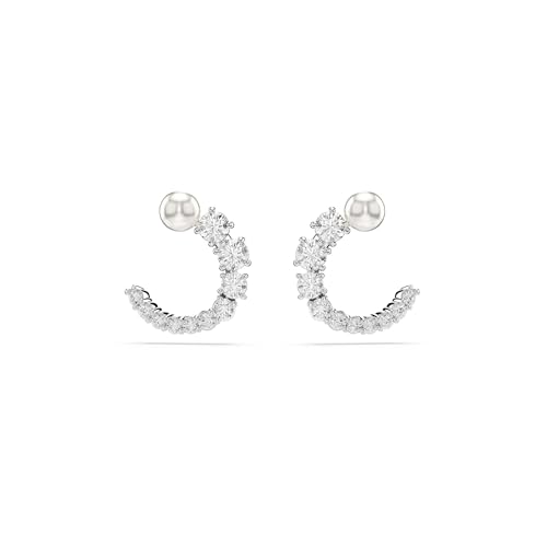 Swarovski Matrix Hoop Earrings, Crystal Pearl Studs with Ring of Clear Round-Cut Stones in a Rhodium-Finished Setting, Part of the Swarovski Matrix Collection