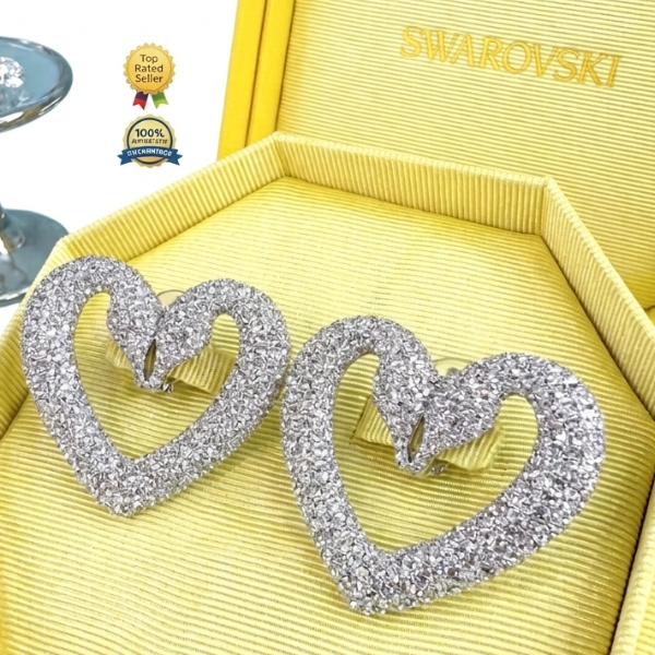 Swarovski 5621097 Signum Swan White Crystal Stud Earrings Jewellery