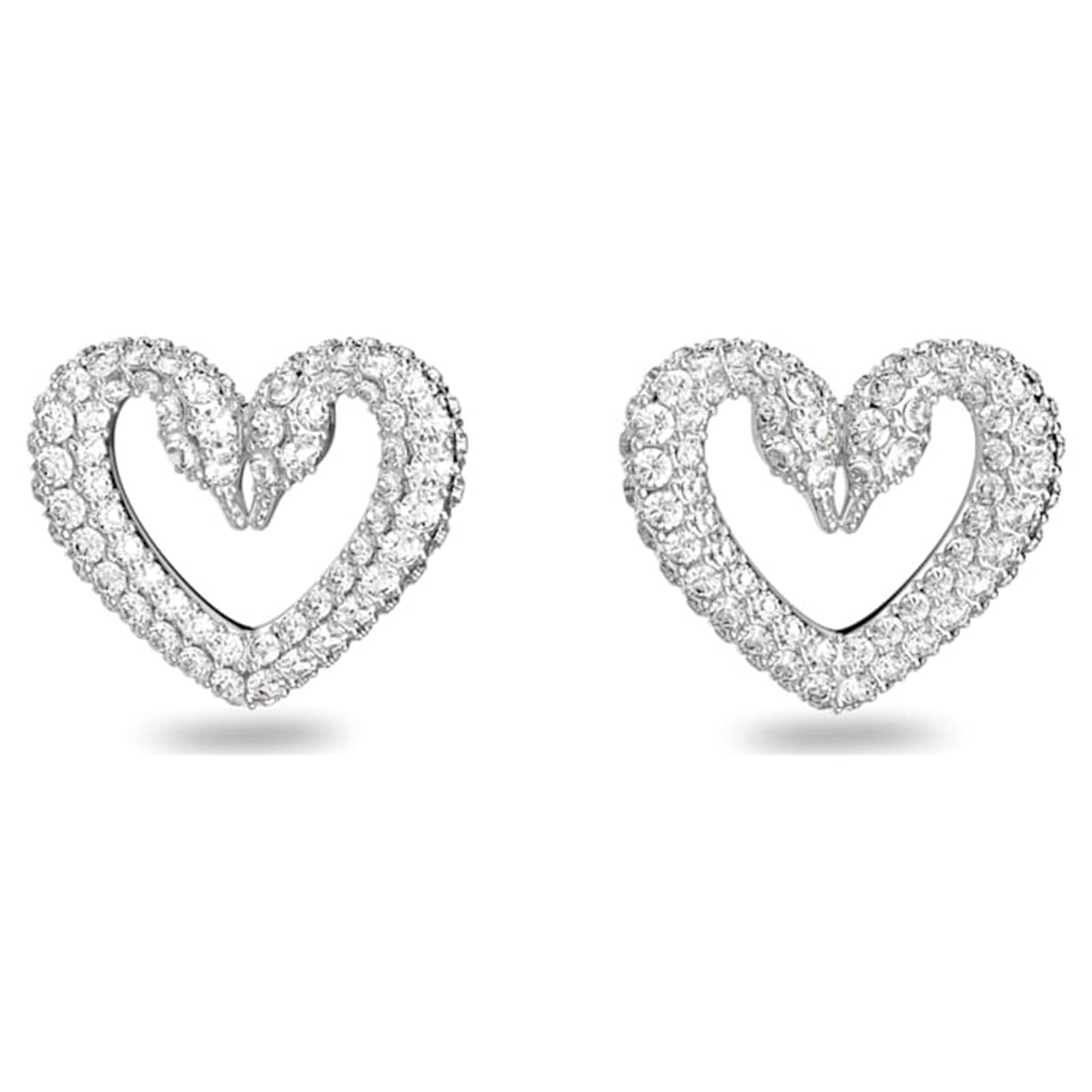 Swarovski Heart Earrings Clip On Large Sublima White Rhodium Silver Swan Hearts