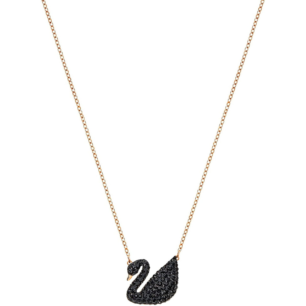 Swarovski womens Pendant Necklace, Swarovski Iconic Swan Necklace, Crystals,Rhodium plated / Black, One Size