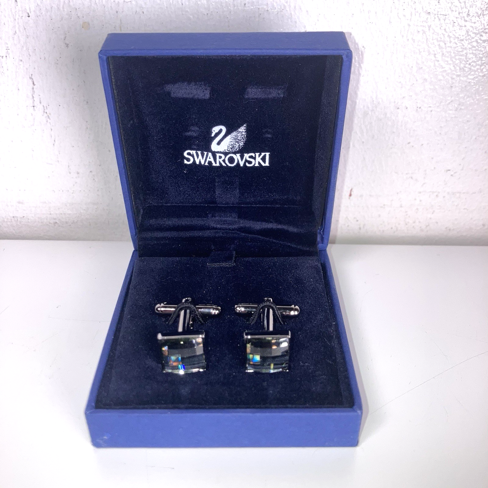 Swarovski Black Diamond Cufflinks Crystal Checkerboard Swan Signed 973791