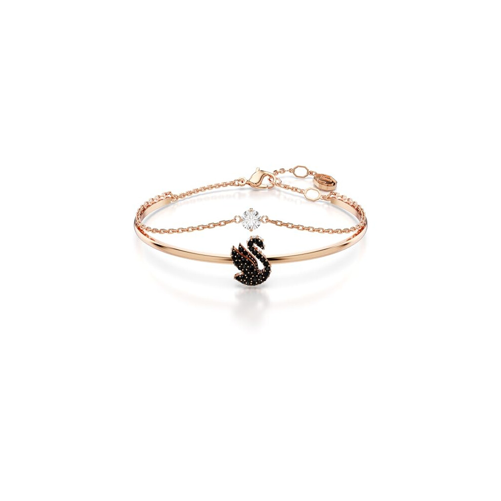 SWAROVSKI Iconic Swan Bracelet Multi/Rose Gold/Black/Clear Crystal MD, Crystal