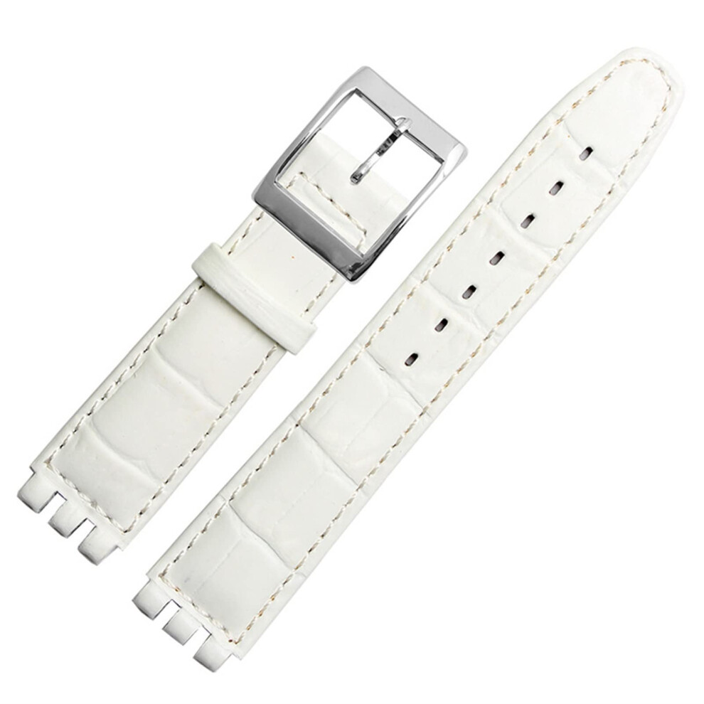 17 mm 19 mm calfskin watch strap for Swatch watches men and women, alligator pattern, watch band, accessory white 19 mm