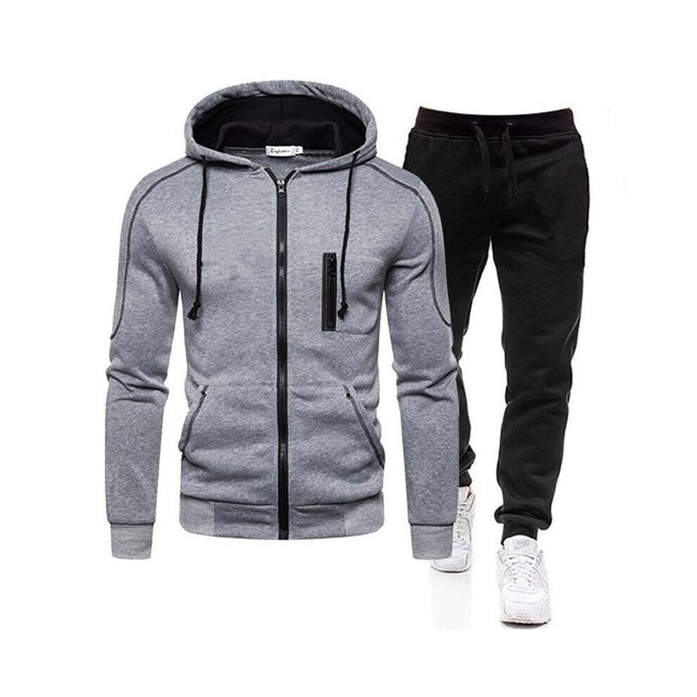 Autumn Winter Men's Sweatshirt+Sweatpants Suit Men's Zipper Hoodie Fitness Sportswear Suit Hooded Sportswear