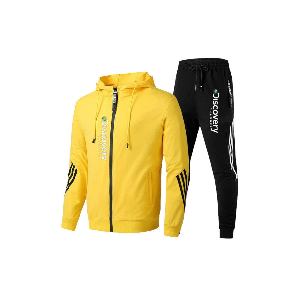 (Yellow, M) Men's jogging suit sportswear hoodie sweatpants suit
