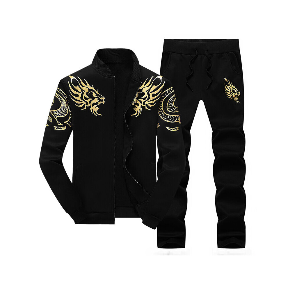 Autumn Winter Print Tracksuits Men's Hoodies + Sweatpants Two Piece Suit Hooded Casual Sports Male Clothing