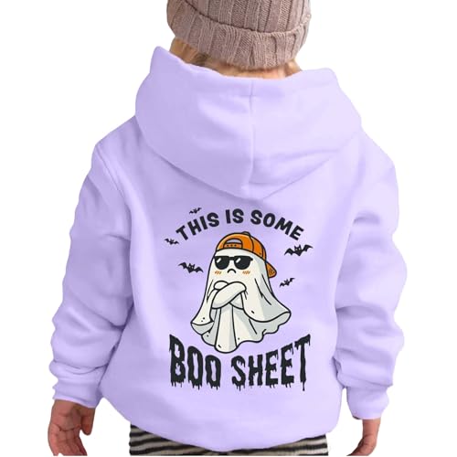 Halloween Hoodie Girls Cute Ghost Print Oversized Hoodies Trendy Teenage Girls Long Sleeve Fleece Hooded Pullover Regular Fit Sweatshirt Outfit Sportswear with Pockets Age 2-13 (Purple, 4-5 Years)