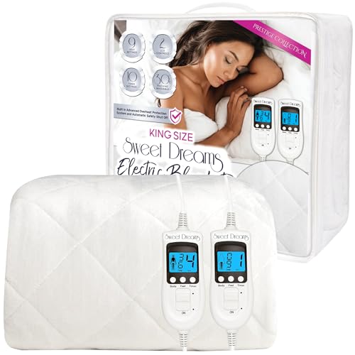 Sweet Dreams Electric Blanket King Size Dual Controls, Luxury Bed Fleece Heated Mattress Cover, Machine Washable Heated Underblanket, Overheat Protection (King Size)