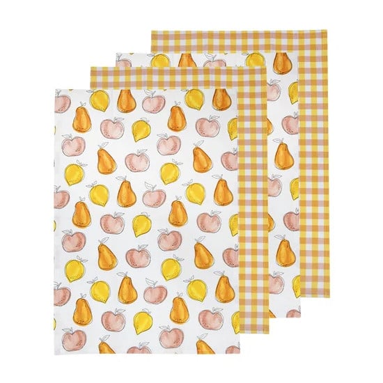 Ladelle Sweet Fruit 4 Pack Kitchen Tea Towels Cotton Fruit Design Set