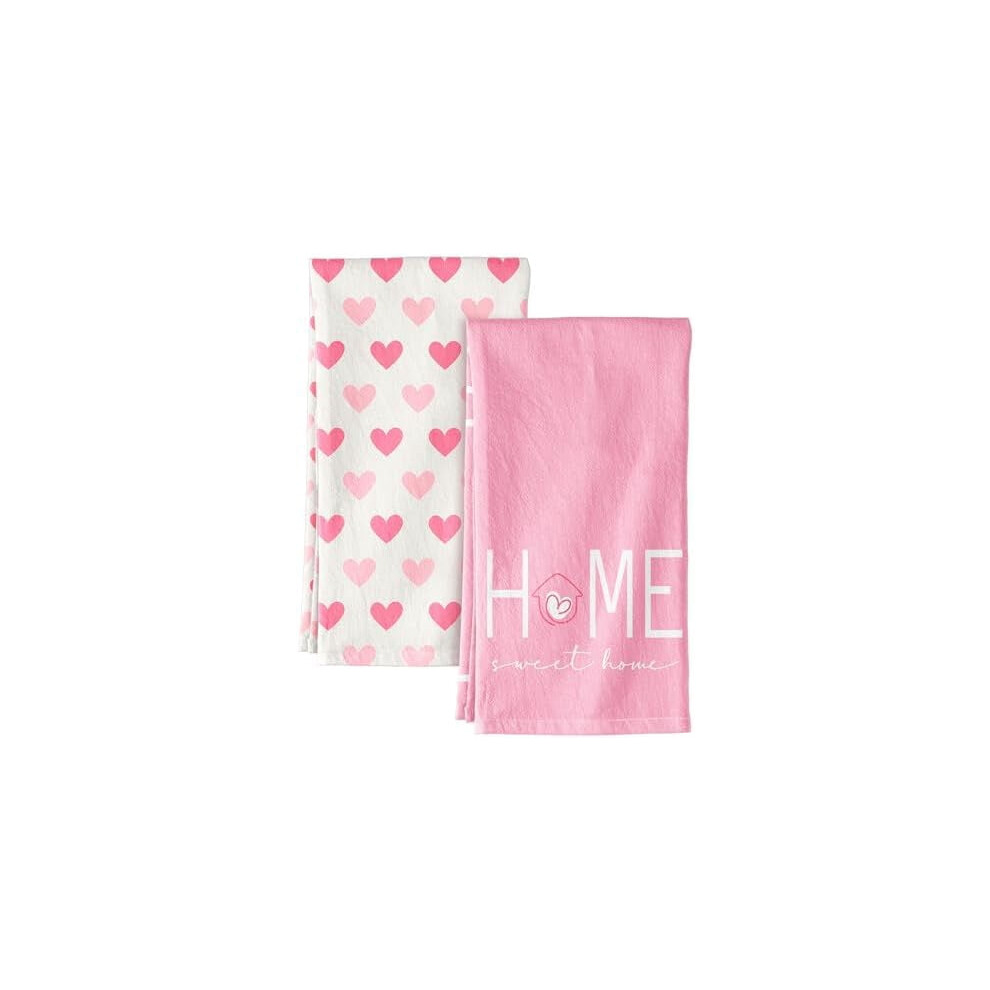 Valentine's Day Kitchen Towels Set of 2 â 18x26 in Flour Sack Tea Towels with Hanging Loop, Pink Hearts, Absorbent & Reusable, Home Sweet Home