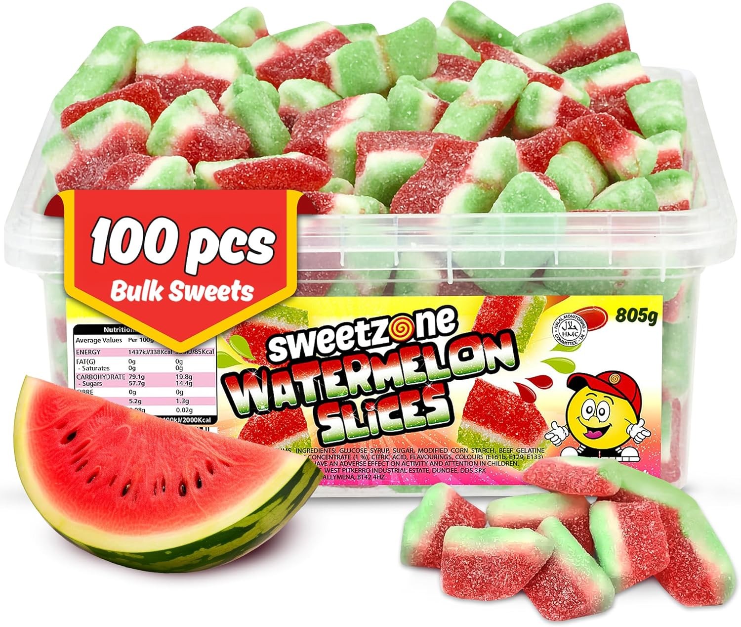 Sweetzone Sweets Tub Filled Full Of Fizzy Watermelon sweets | 800g of Pieces of