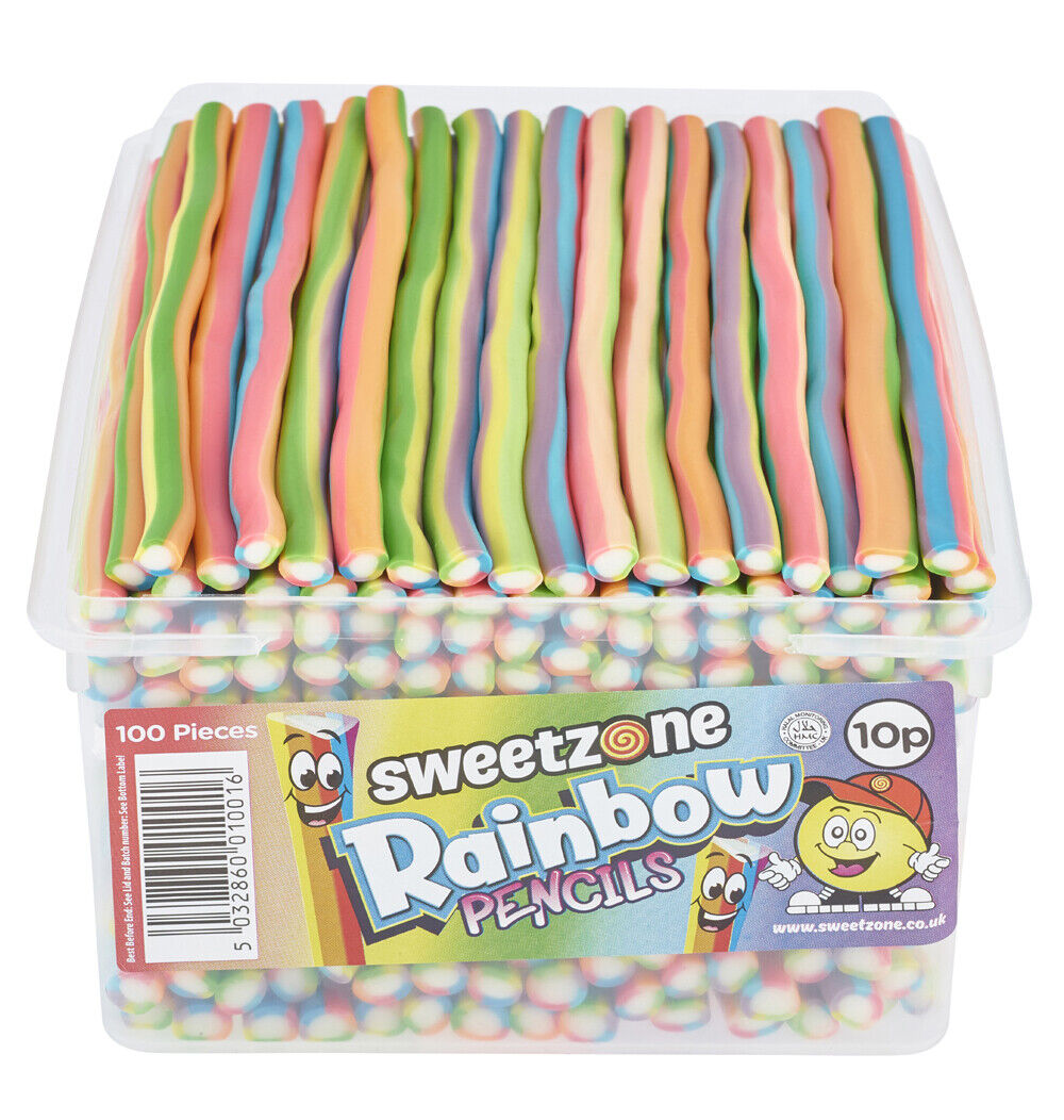 Sweetzone (Rainbow Pencils 1.1KG TUB - 1I091) Pencil Sweets 1.1kg VEGAN Cherry Bubblegum Blue Raspberry Strawberry Rainbow UK
