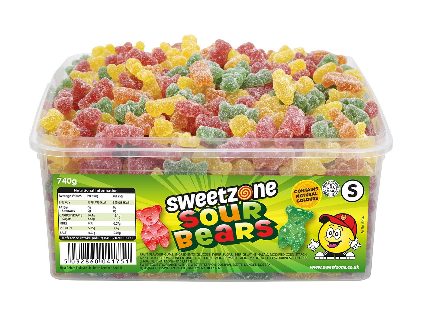 Sweetzone Sour Bears - 800g Halal Fizzy Gummy Sweets Tub