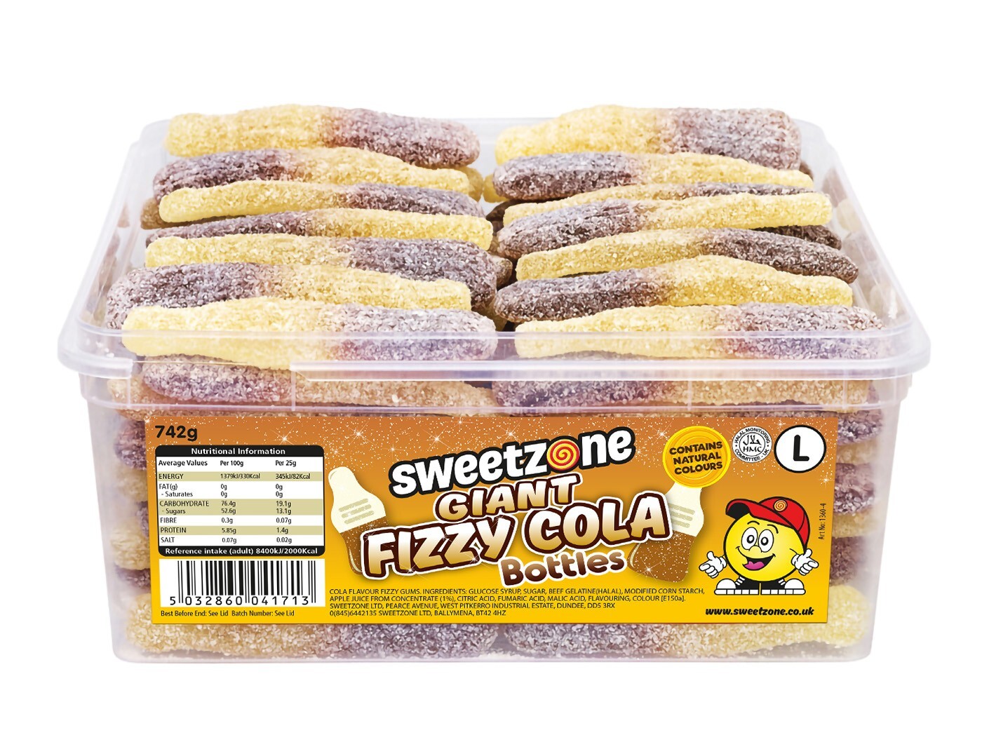 Sweetzone SweetZone Cola Bottles 740g Tub of HMC Approved 100% Halal Sweets